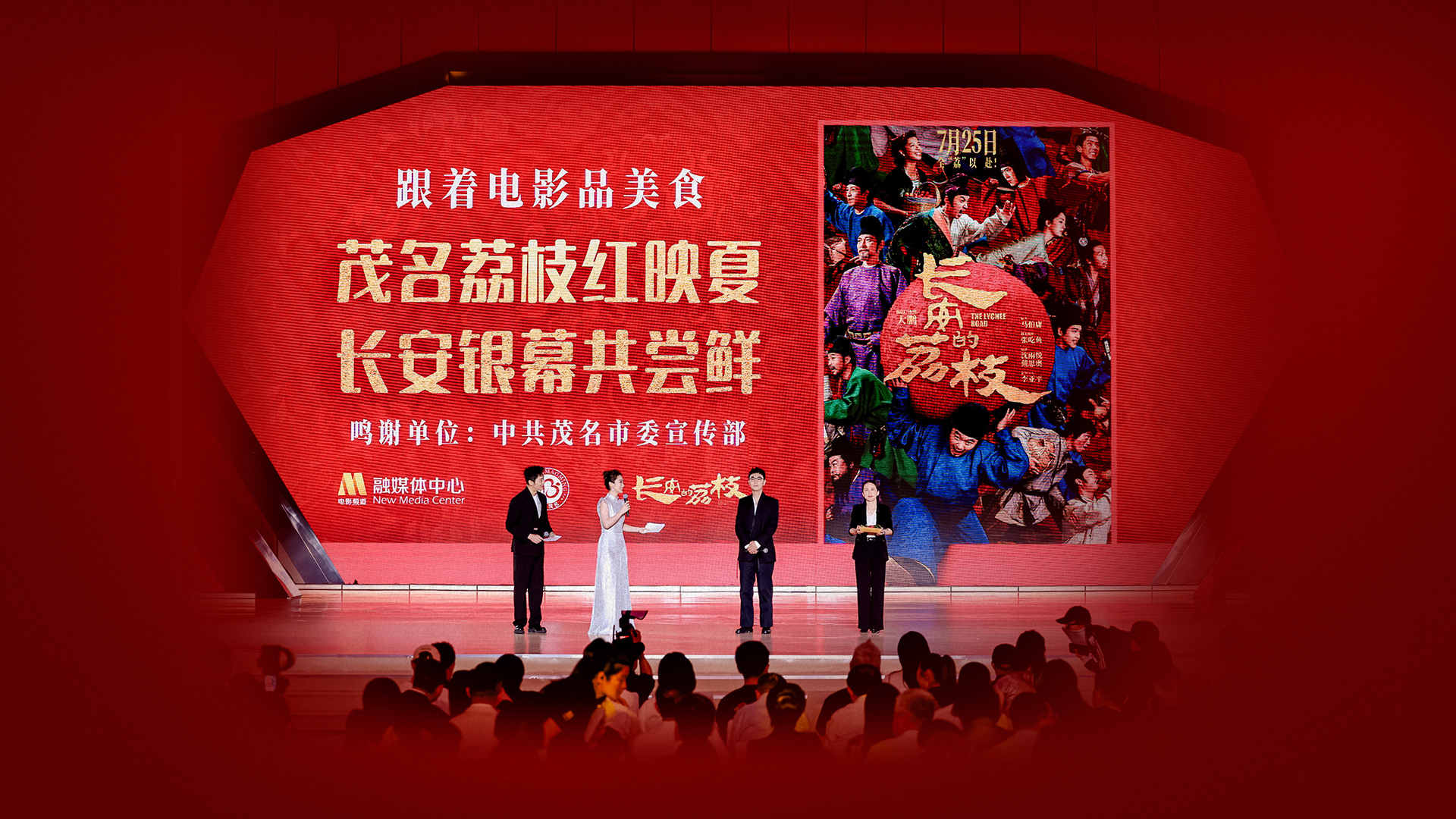 6月6日,2025暑期档电影片单发布会暨光影绽放中国行全国电影周启动仪式在北京举行,电影《长安的荔枝》导演大鹏带着当日上午在茂名采摘的鲜荔枝来到现场,与嘉宾共同品尝了来自“中国荔乡”茂名的千年甜蜜。
